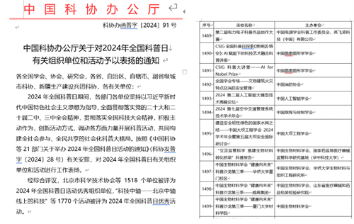 中國科協(xié)表?yè)P2024年全國科普日優(yōu)秀活動(dòng),中國消防協(xié)會(huì )名列其中