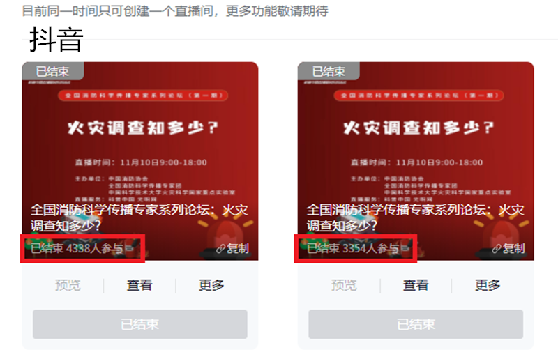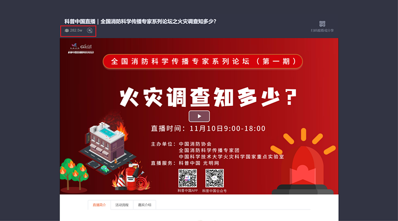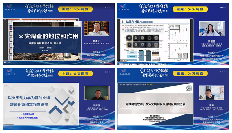 12位專(zhuān)家采取報告與交流相穿插,實(shí)踐與思考相結合,學(xué)術(shù)與成果共展示的方式,圍繞不同類(lèi)型的火災分析,不同技術(shù)的火調應用展開(kāi)了精彩報告,從不同的視角展示了火災調查工作的作用、現狀、技術(shù)前沿以及未來(lái)發(fā)展方向。同時(shí),各位專(zhuān)家也針對觀(guān)看直播人員的提問(wèn)進(jìn)行在線(xiàn)解答與交流,現場(chǎng)討論氛圍十分熱烈,此次科普直播在各大平臺引起廣泛關(guān)注,瀏覽、觀(guān)看、參與話(huà)題人員突破500萬(wàn)。
