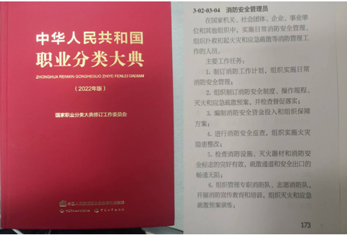 國家《職業(yè)分類(lèi)大典》(2022版)明確消防安全管理員職業(yè)資格條件