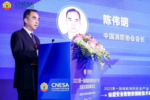 中國消防協(xié)會(huì )會(huì )長(cháng)陳偉明在致辭中指出,電化學(xué)儲能是近年來(lái)國家發(fā)展迅速的新能源新業(yè)態(tài),黨的二十大報告對新能源重要的戰略定位,寄予了很高的期望。剛剛閉幕的全國兩會(huì )上,人大代表、政協(xié)委員就儲能安全提出許多意見(jiàn)和建議。國家雙碳戰略實(shí)施為儲能行業(yè)持續發(fā)展奠定了堅實(shí)的基礎,預計在“十四五”期間新能源儲能持續高速發(fā)展將再創(chuàng )新高,這對安全問(wèn)題提出了新的課題,這方面現成的經(jīng)驗不多,期待我們形成中國特色解決方案。中國消防協(xié)會(huì )將在后續學(xué)術(shù)交流、科普宣傳、科技創(chuàng )新和團體標準工作中把這項工作給予重點(diǎn)支持。