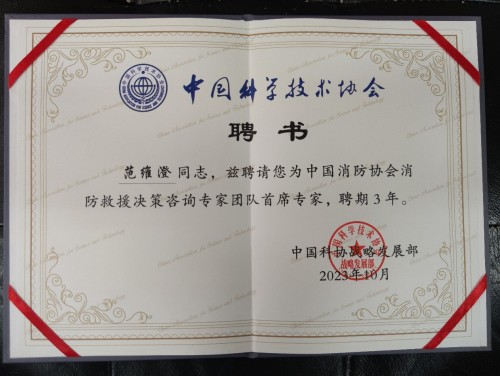 中國科協(xié)向消防救援決策專(zhuān)家團隊首席專(zhuān)家頒發(fā)聘書(shū)