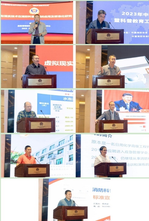 頒獎儀式結束后,召開(kāi)了消防科普教育論壇,會(huì )議由科普委副主任李進(jìn)和朱偉主持。來(lái)自應急管理部消防產(chǎn)品合格評定中心、清大東方教育科技集團有限公司、廣東瑞霖特種設備制造有限公司、應急管理部天津消防研究所、福建飛遠教育管理有限公司、樂(lè )山應急管理學(xué)會(huì )、湖南人人居安消防安全服務(wù)集團有限公司等單位的7名代表分別就虛擬現實(shí)技術(shù)在消防科普領(lǐng)域的應用及標準化研究、火災應急問(wèn)題與消防科普任務(wù)、應急消防科普教育基地模塊化建設的探索研究、消防科普教育服務(wù)規范等方面進(jìn)行了分享和交流,現場(chǎng)討論氛圍十分熱烈。