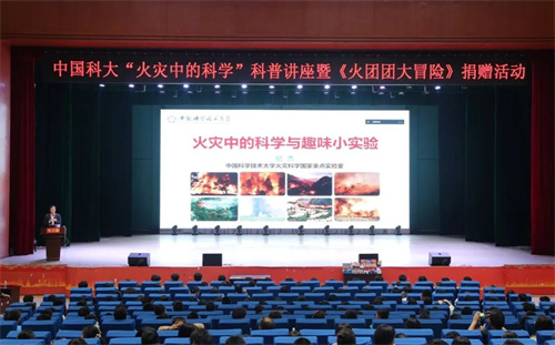 在科普報告環(huán)節,紀杰教授以近期的火災案例為切入點(diǎn),闡述了提高消防安全意識和掌握火災知識的必要性。他帶領(lǐng)大家穿越時(shí)空,從“火、災、滅”等漢字的起源與火的關(guān)系開(kāi)始,講到人類(lèi)早期的用火史,再到建筑火災、森林火災、工業(yè)火災中的一系列典型火行為——轟燃、回燃、火旋風(fēng)、爆發(fā)火、多火焰融合、火燒連營(yíng)等,用通俗易懂的語(yǔ)言闡述了這些火行為背后蘊含的科學(xué)原理。報告巧妙地融入了一系列趣味知識點(diǎn),例如:蘇東坡的防火專(zhuān)家身份、故宮太平缸下的暗格之謎、電影中“汽車(chē)事故后煙頭引起爆炸”場(chǎng)景特效的實(shí)驗證偽、火焰在鋼琴曲的“指揮下”翩翩起舞等。報告內容激發(fā)了大家強烈的好奇心,趣味十足的講解方式向大家高效地傳播了火災科學(xué)知識。